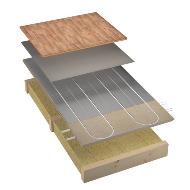 Meillä on kaksi lattialämmitysjärjestelmää, jotka on suunniteltu minimoimaan rakennekorkeus. Tästä on hyötyä varsinkin korjausrakentamisessa, jolloin jokainen millimetri on tärkeä.